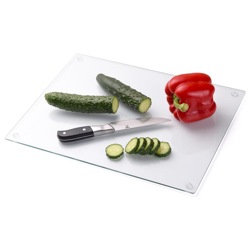 - HYGIENIC AND DURABLE--This glass chopping board is easy to clean, non-porous, and non-absorbent, won't absorb odors or retain oil. Made from high-strength tempered glass, which is impact-resistant, scratch-resistant, and less prone to knife marks. With minimal maintenance, it will look like new even after years of use