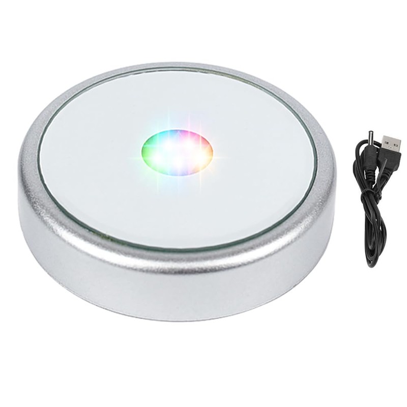 PHOSOK LED Multimodal Multicolor Light Base Silver Lighted Stand for Crystal Art Display Round Stand