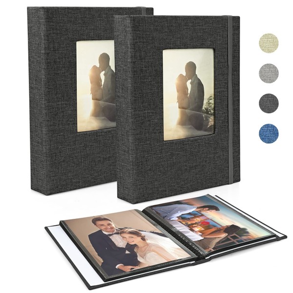 Photo Album 13 x 18 52 2 Packs Small Mini Linen Photo Album Black Pages 26 Pages with 52 Photos Slip-in Album for Baby Valentine's Day Birthday Gift