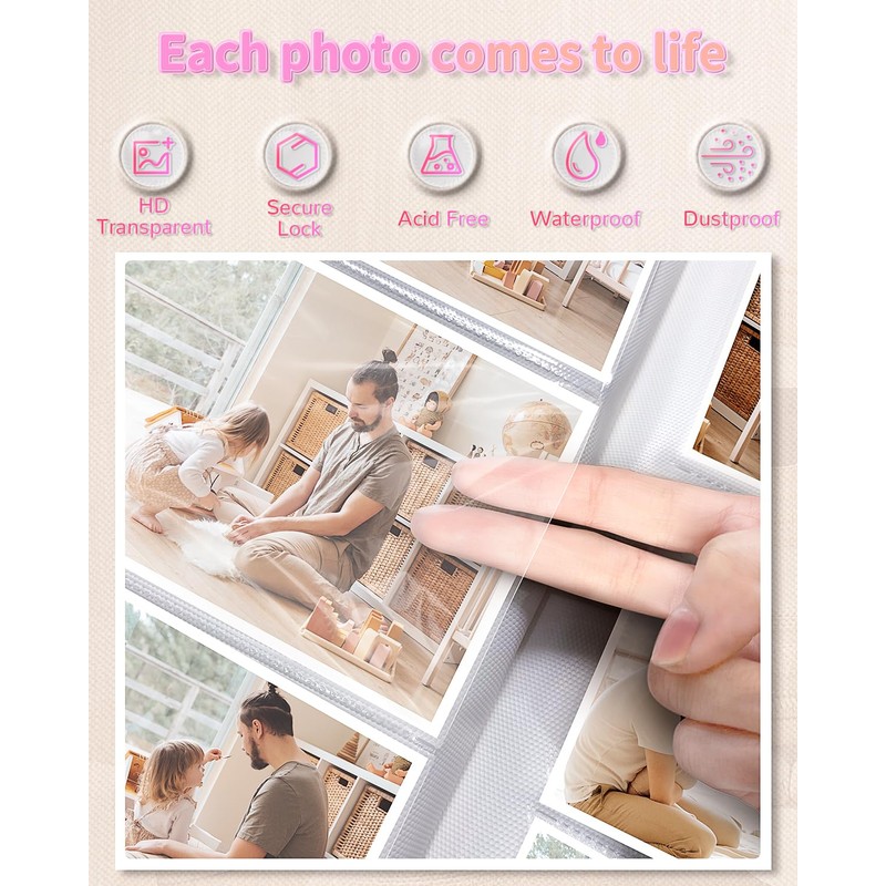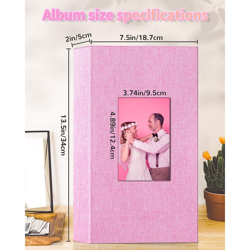 Photo Album 4x6 with 300 Pockets,Slip-in Picture Albums,Linen Cover Memory Book with Front Window,White Page Vertical Photo Book for Wedding,Family,Anniversare,Baby,Vacation