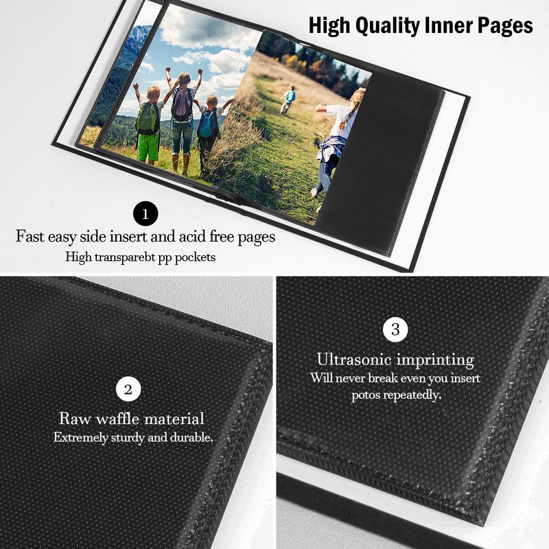 - 【FLEXIBLE & LIGHTWEIGHT】- This 5x7 photo album book is lightweight to carry in the bag to keep it, and is easy to insert. Each display pocket is black inside, perfect for displaying 5x7 photos, postcards, artwork and more.