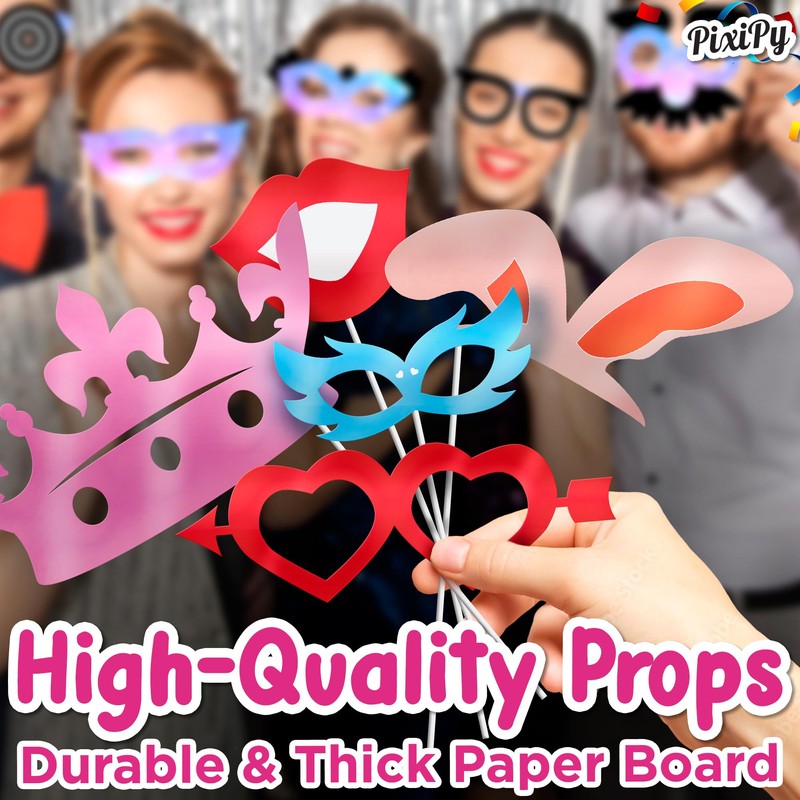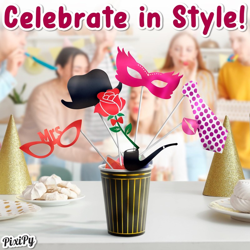 - CAPTURE UNFORGETTABLE MOMENTS - Make your party a memorable experience with PixiPy fun photo booth props! Whether you're celebrating a 1st birthday, sweet 16, fabulous 50s, or any other age, these props will add a unique touch to your festivities