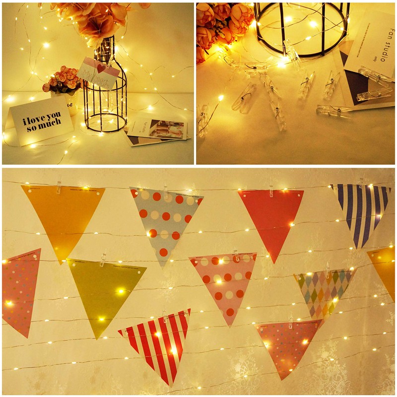 - Warm Atmosphere: Each LED on the string lights emits warm white light, Transparent clip which can nip photo or other small Items creating excellent illumination and a warm atmosphere, spreading light and cheer across a wide area.