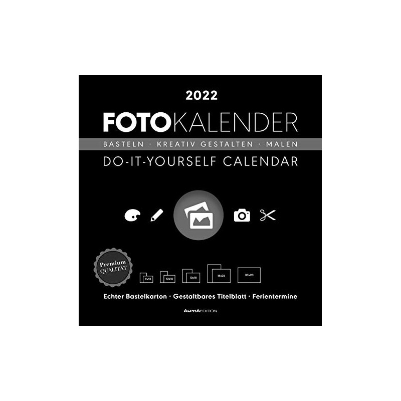 Photo Craft Calendar Black 2022 - Do it yourself Calendar 32 x 33 cm - Dated - Creative Calendar - Photo Calendar - Alpha Edition