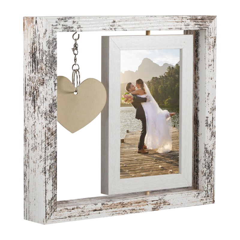 Photo Frame 4x6, Rotating Floating Wooden Picture Frames with Heart Pendant D...