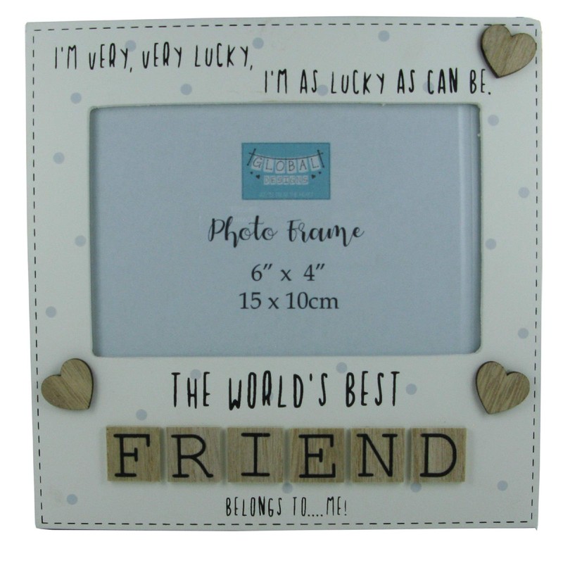 Photo Frame The Worlds Best Friend Friendship Gift Letters Tile Art BFF Gift Wood Cream 6x4"
