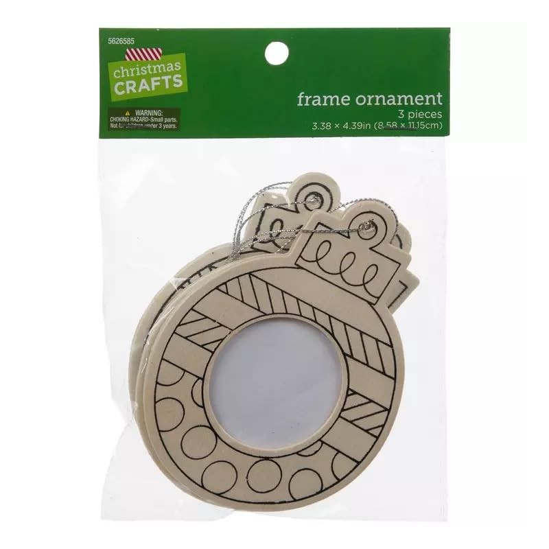 Photo Frame Unfinished Wood Ornaments - 3 Piece - 3.38 Inches