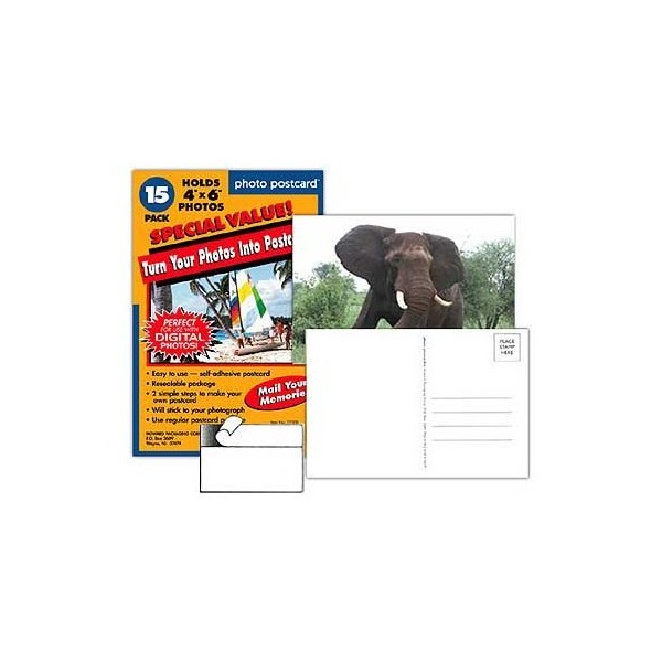 This package of photo postcards from Howard Packaging is just the ticket for sending your vacation memories home ahead of yourself. These easy-to-use self-adhesive postcard backs are just waiting for your brilliant photos to attach themselves to. Two simple steps is all it takes to take your cool photos and make waaay cool postcards out of them.No longer will your loved ones have to receive cheesy photos of the hotel and its generous parking lot, gone are the days of postcards from the spinner rack at the local tourist shop that feature strangers having a better time than you - now you have command of your mailings. From this point on its strictly, 'Here we are in front of . . . - the Golden Gate, Diamond Head, Fenway Park, Mt. Rushmore, the Vatican, the Eiffel Tower'. You get the idea. But you don't have to wait 'til you have your holiday booked to get these clever memory mailers. They're also perfect for just keeping in touch in ordinary ways. Think of: wedding announcements, baby announcements, party invitations, ''Miss You...'' cards, valentines, and maintaining your solid position in the will by making sure the grandparents get regular photos of the kids.