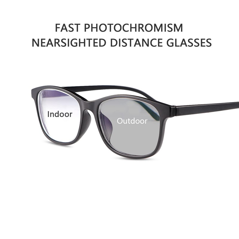 Photochromic Transition Nearsighted Distance Glasses For Men and Women Retro Myopia Glasses TR90 Lightweight Negative Power Shortsighted Eyeglasses Black Full Frame Eyewear Anit UV & Glare Sunglasses
