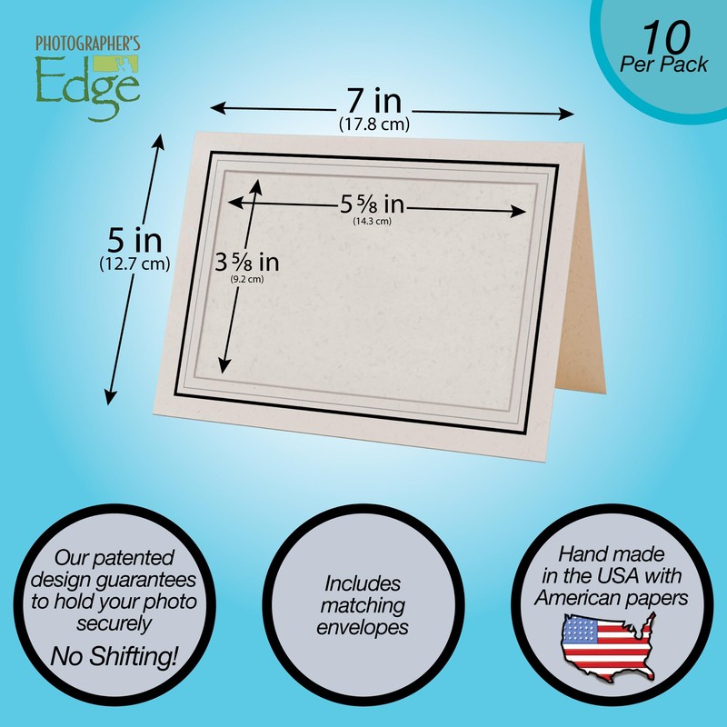 Photographer's Edge, Photo Insert Card Sample Pack, 10 Blank Cards and Envelopes, All Occasion Cards, for 4x6 Photos - Raven Black & Granite