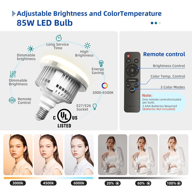 - The photography lighting kit with Backdrops includes almost everything you need. Photo studio photography equipment.Includes:1 x 8.5ft*10ft(2.4m*3m) background stand; 2 x 33" white parasols; 2 x softboxes; 2 x 45W bulbs; 2 x 85W dimmable LED bulbs; 3 x 5.9ft*9.2ft(1.8*2.8m) polyester fabric photography backdrops; 4 x Fish Mouth Clips; 1 x Carrying Bag; 2 x Sand Bags