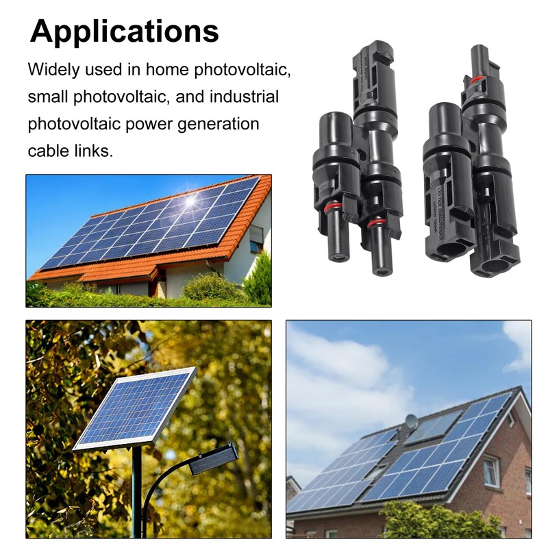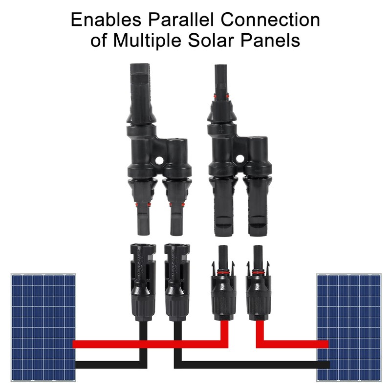 - Solar panel cable connector 1 male to 2 female and 1 female to 2 male) quick and simple assembly processing and simple removal of plugs without the aid of any extra instrument