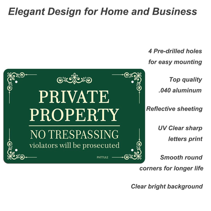 PHTTULE No Trespassing Sign, Private Property Sign, 8 x 12 Inches UV Printed 40 Mil Rust Free Heavy Duty Aluminum, Weatherproof Security Signs for Home and Business