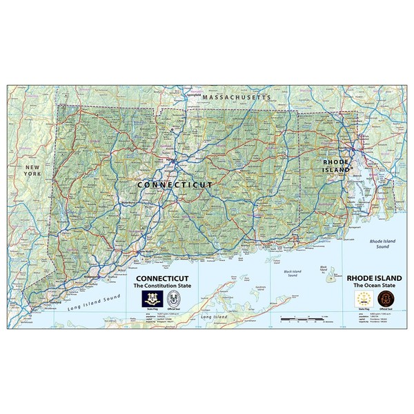 - With its clear text it's perfect for any room, office, or school, and a great way to gain a comprehensive view of Rhode Island and Connecticut.
