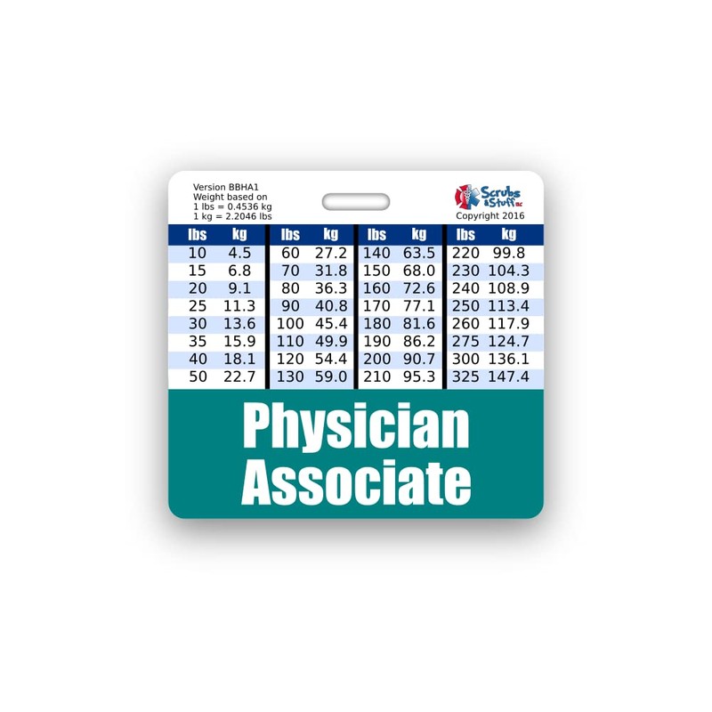Physician Associate Badge Buddy Horizontal w/Height & Weight Conversion Charts (Stardard, Teal)