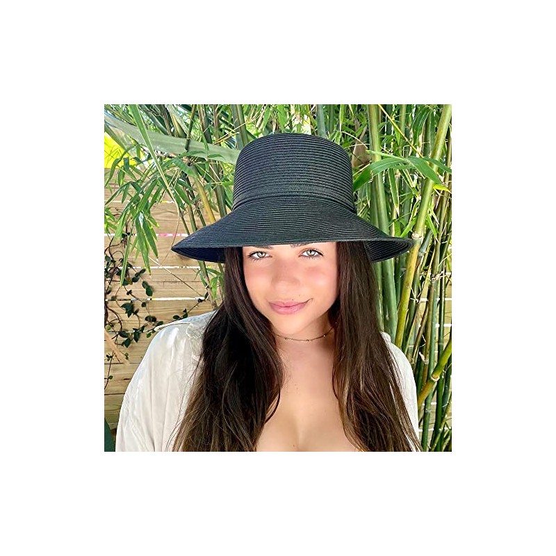 Physician Endorsed Women's Camelia Cloche Hat with Matching Straw Trim, Black, One Size