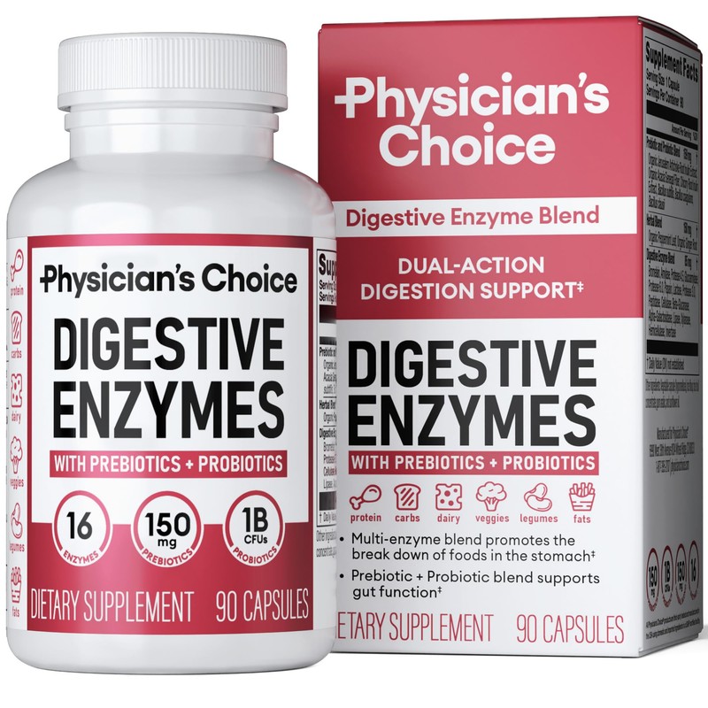 Physician's CHOICE Physician's CHOICE Digestive Enzymes - Multi Enzymes, Organic Prebiotics & Probiotics for Digestive Health & Gut Health - for Meal Time Discomfort Relief & Bloating - Dual Action Approach - 90 CT