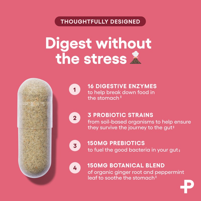 - Dual Action Relief: Our powerful digestive enzymes aid with breaking down food while the prebiotics & probiotics promote digestive function in the gut. They work synergistically to provide relief from mealtime discomfort.