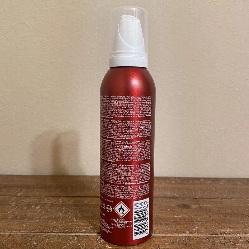 A dense, lightweight, creamy mousse to give the hair volume and body. • With Quinoa extract, which is rich in proteins, and the hydrating properties of Provitamin B5. FULL INGREDIENT LIST: AQUA (WATER), VP/VA COPOLYMER, ISOBUTANE, PROPANE, COCAMIDE DEA, PEG-12 DIMETHICONE, POLYQUATERNIUM-11, GLYCERIN, SODIUM COCOAMPHOPROPIONATE, PARFUM (FRAGRANCE), PANTHENOL, CETEARETH-25, LAURETH-2, PEG- 40 HYDROGENATED CASTOR OIL, PHENOXYETHANOL, POLYQUATERNIUM-6, ETHYLHEXYLGLYCERIN, BUTANE, CAPRYLYL GLYCOL, PANTOLACTONE, CHENOPODIUM QUINOA SEED EXTRACT, POTASSIUM SORBATE, SODIUM BENZOATE. |