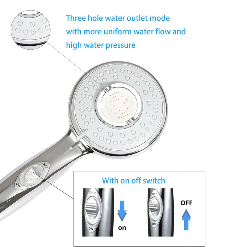 - 3. Convenient on/off switch: Designed with an easy-to-use switch, turn off the water supply while showering, ideal for bathing children, pets, and those with disabilities.