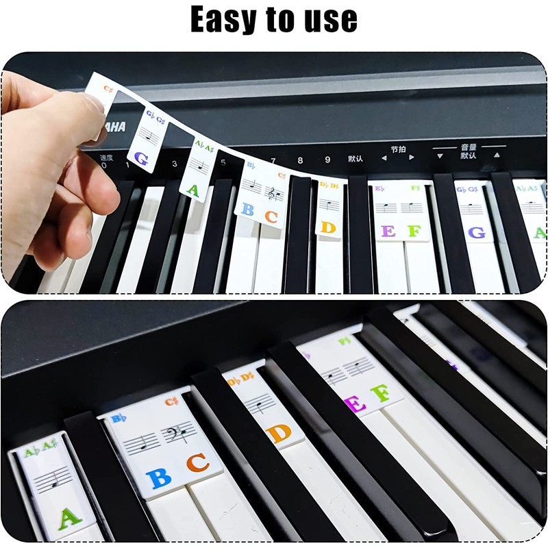 - 【 COLORFUL LARGER LETTER 】 Each keyboard notes on the piano stickers for keys removable are color coded to help identify and memories easily.and the larger letter easier to recognize for kids and beginners to solve the problems that small letters are hard to find in playing.