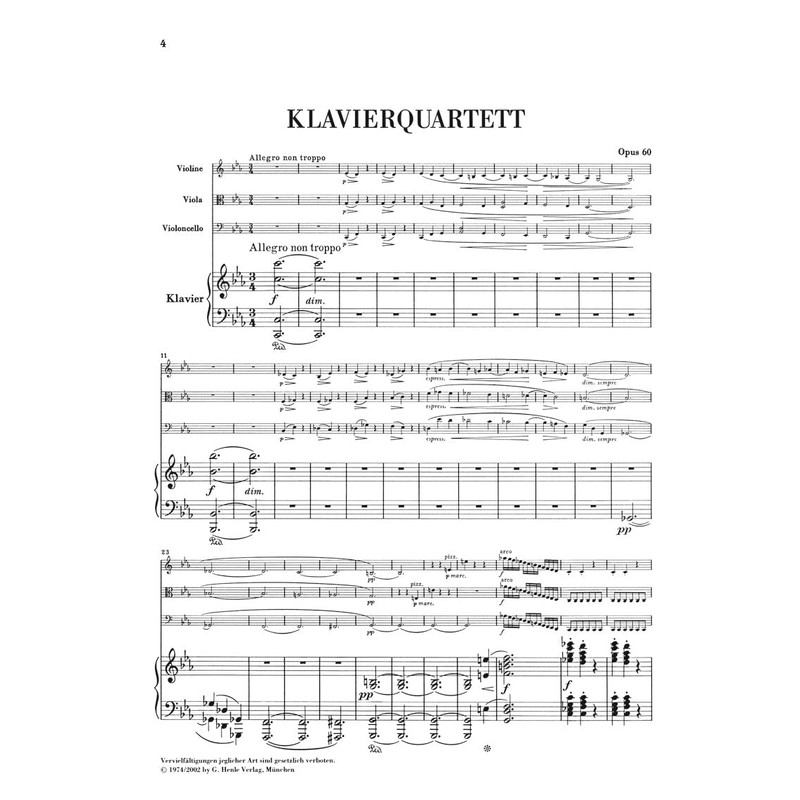 Piano Quartet C Minor Op 60 (Multilingual Edition)