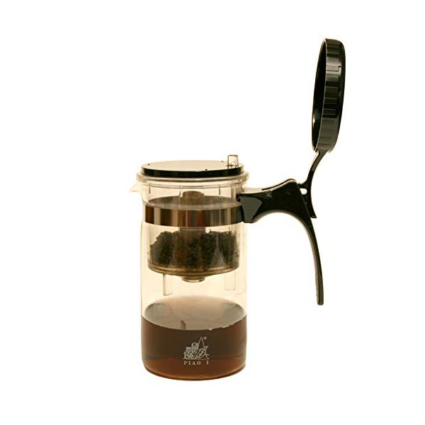 Latest double cover design. This is the real Piao I 1000cc (33.8oz capacity) teapot (12oz capacity inner cup) with a unique award-winning patented design. Our teapot is quick and convenient. Just add tea and hot water to the top cup. When tea has finished brewing, push the button on the cover. This opens the patented ball valve at bottom of the cup, allowing the brewed tea to drain to the lower container. The leaves no longer contact the water, so the tea is not over brewed.