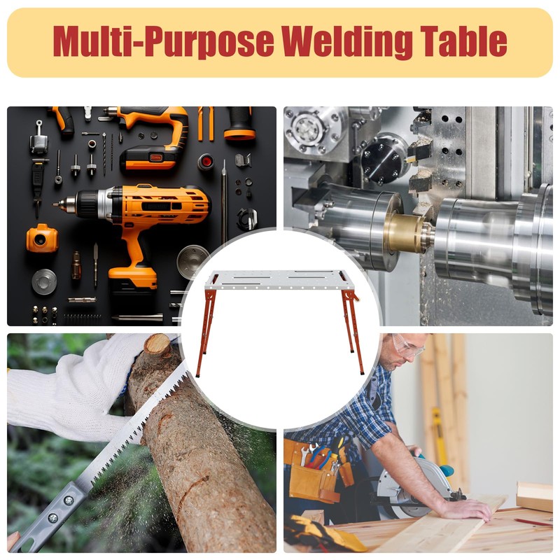 - 【EASY TO MOVE AND STORE】The steel welding table is equipped with 4 foldable feet and 2 nylon casters, allowing it to be moved flexibly in all 360° directions. When not in use, it can be folded and stored to save space. When in use, it can also be used as a stand-alone welding station, providing you with more options for use.