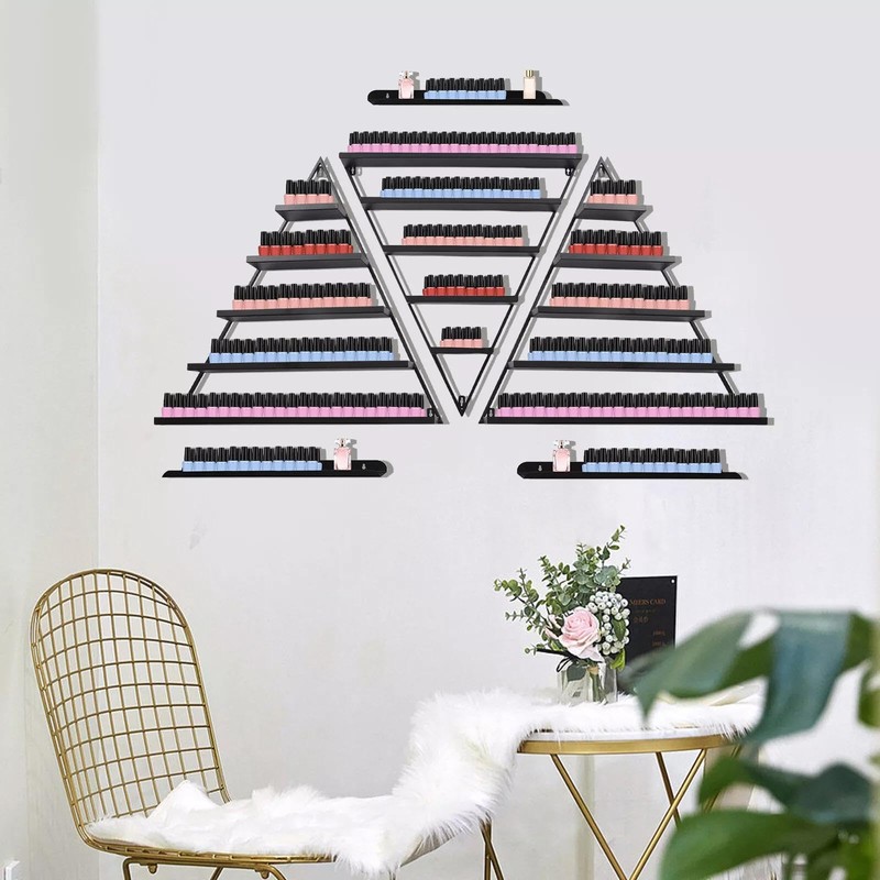 - 【COMPLETE 6 PIECES SET】3 triangular display racks and 3 crossbars can be combined at will, providing you with enough space to place items at will. nail polish wall rack is great for nail salon, salon store, home and other display and storage items.