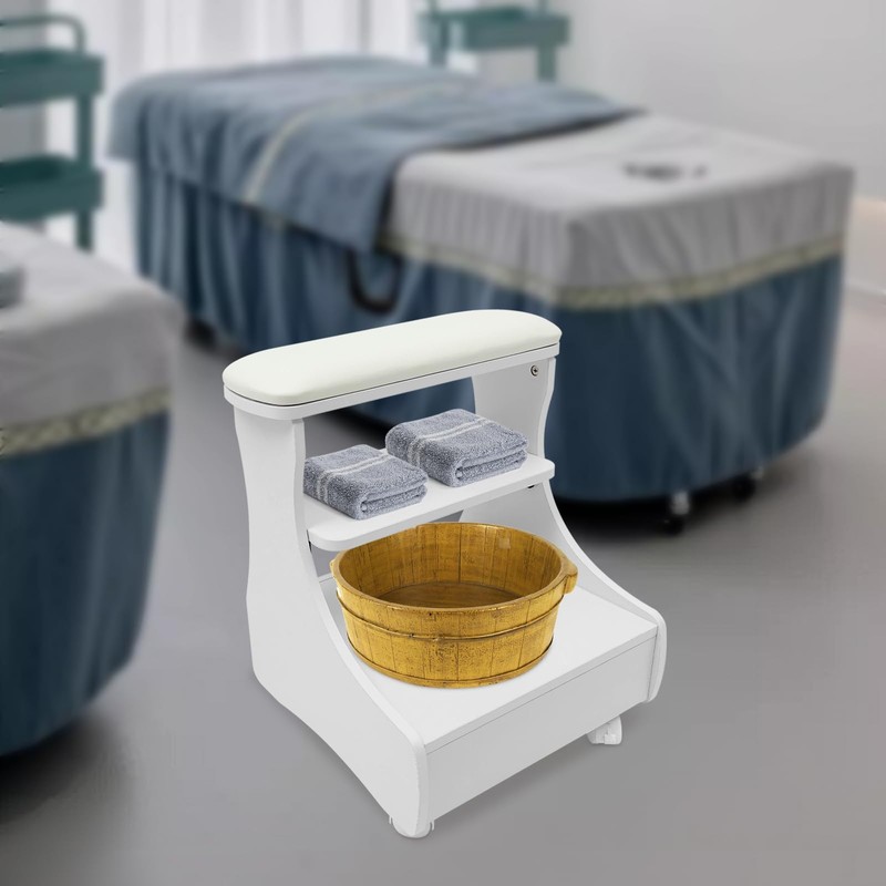 - 【MULTI-PURPOSE】The pedicure foot stool comes with a soft cushion to provide you with a sense of comfort experience. The removable shelf makes it easy for you to store a variety of items. It can be widely used in beauty parlors, medical clinics, hair salons, home bathrooms for foot baths, foot manicures, foot massages and more.