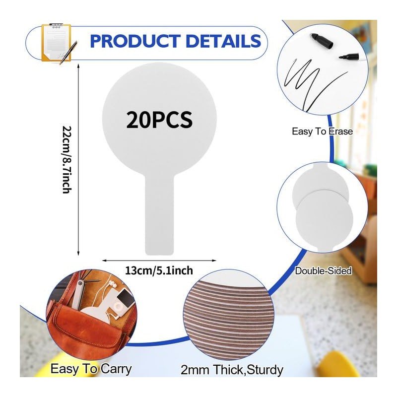 - Unique Design:Our dry erase answer paddle are designed with round shaped and double-sided,and can be rewritable over and over again,very simple and convenient to use.The small dry erase paddles are a smart and fun choice for retrospective meetings,surveys,assessments and more.Students write the answers on the whiteboard,which is also convenient for the teacher to record.