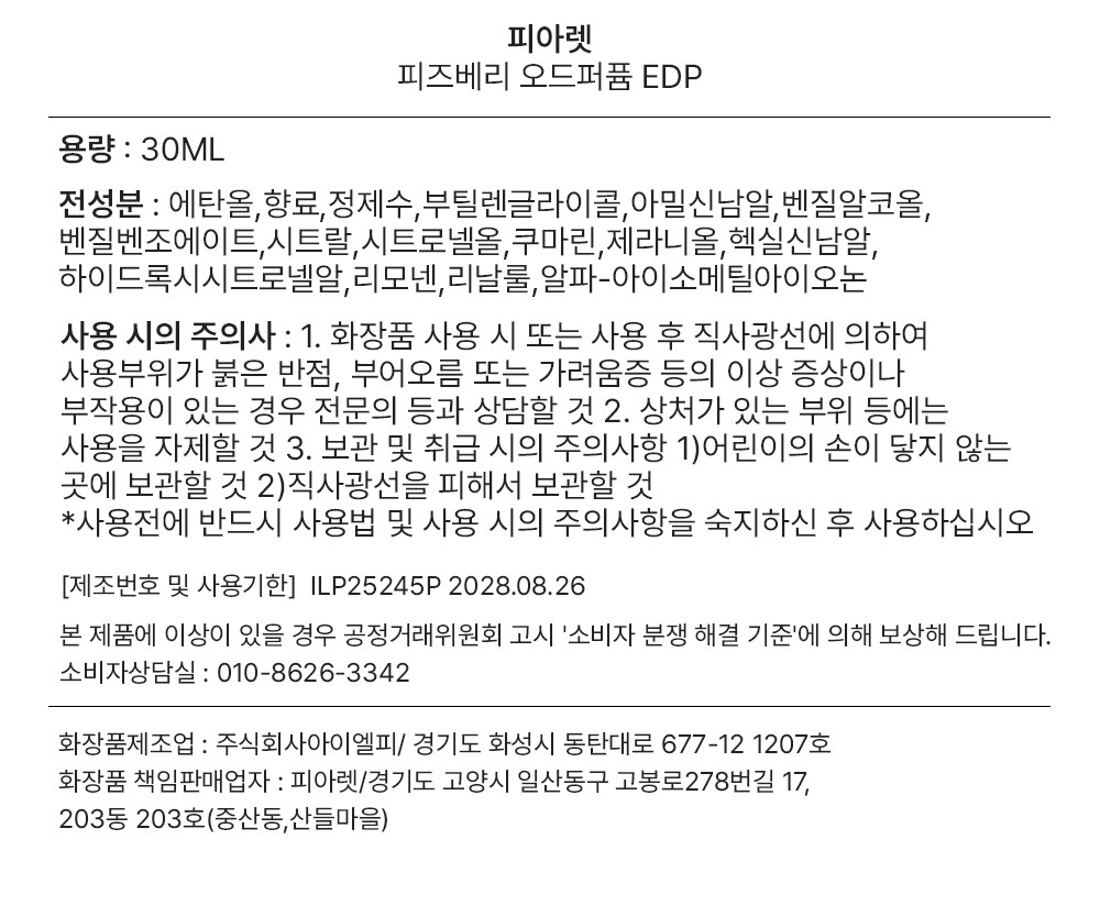 피아렛 오드퍼퓸 피즈베리 30ML