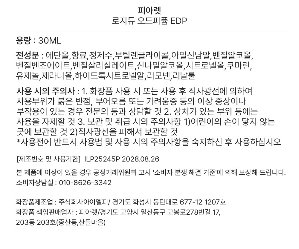 피아렛 오드퍼퓸 로지듀 30ML