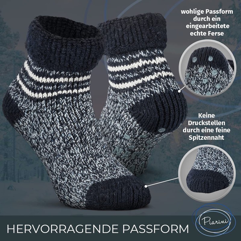 - Box contents: 1 pair Piarini wool non-slip socks. Ideal for winter, at home, sauna socks or bed socks for women, men, boys and girls.
