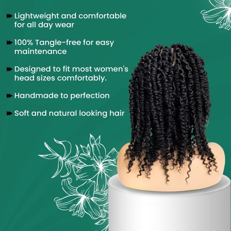 PIB 12'' Single Full Lace Wig Spring Twist Square Parted Knotless Braided Wigs for Black Women Synthetic Lace with Natural Baby Hair (#1B Off Black, 12")