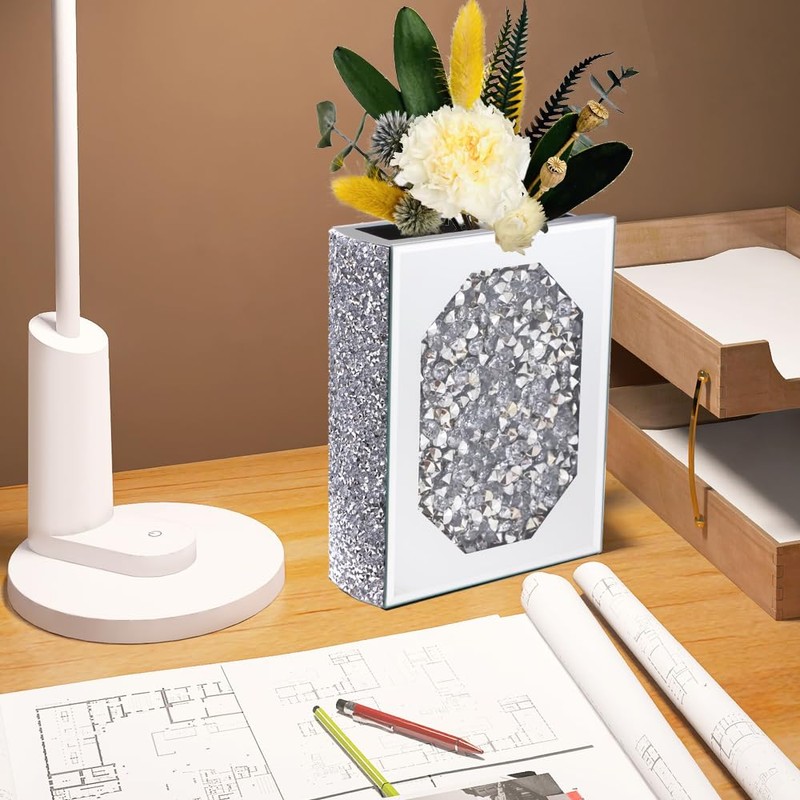 - Suitable Size: Mirrored vase with top opening. 7.8" H×5.9" L×2.3" W. This crystal vase can't contain water, it is only for decoration purposes.