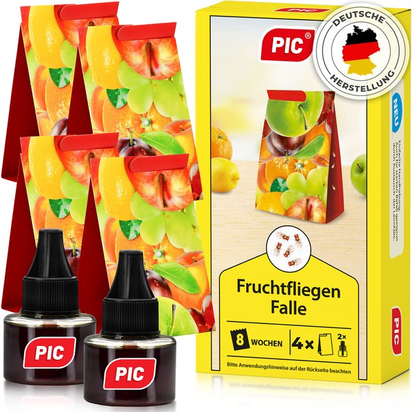 PIC Fruit Fly Trap, Fruit Fly Trap and Vinegar Fly Trap, 2 Attractant Containers with 4 Glue Traps for Extra Long Effect, Tool to Fight Fruit Flies, Suitable for Kitchen