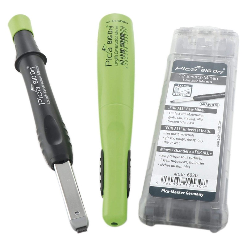 Pica Big Dry 1x Marker + 12 Refills 6030 for All Construction mined Graphite, 6060+6030
