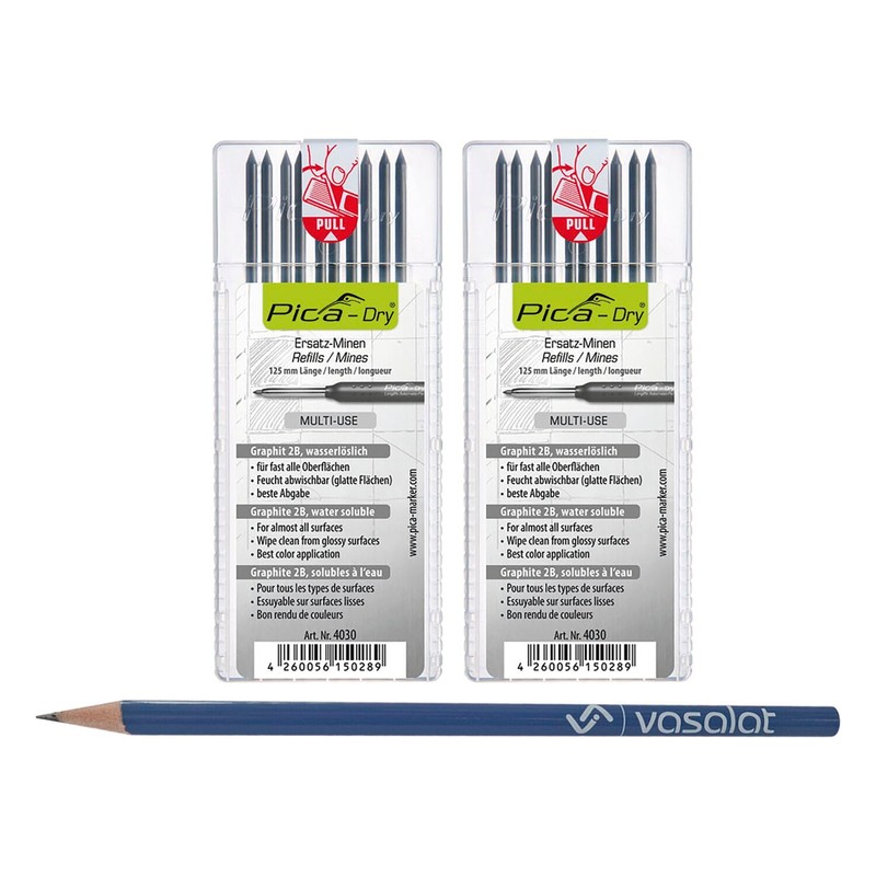 Pica Dry Refills, Multi-Use Pack of 20, Water-Soluble Refills, Graphite 2B, Sharpened