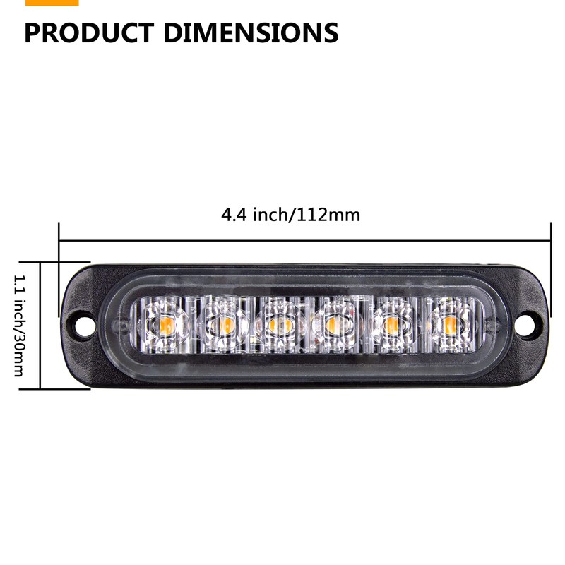 • 【BRIGHTNESS】: The warning emergency light is the newest high power strobe light, 2 times brighter than before! Each unit consists of 6 high intensity LEDs with optic lenses. Built-in heat sink,better heat dissipation performance, Low power consumption, quick instant start-up time. High Performance Aluminum housing,Ultra-thin waterproof design.