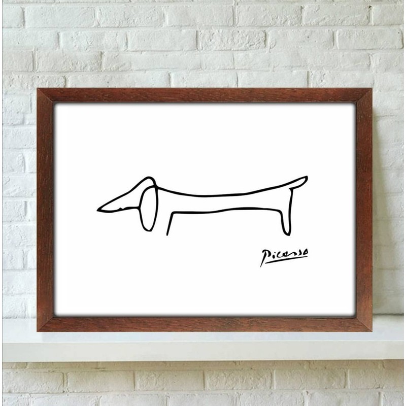 Picasso Cute Dog Picture (A4 Size (with wood grain frame))