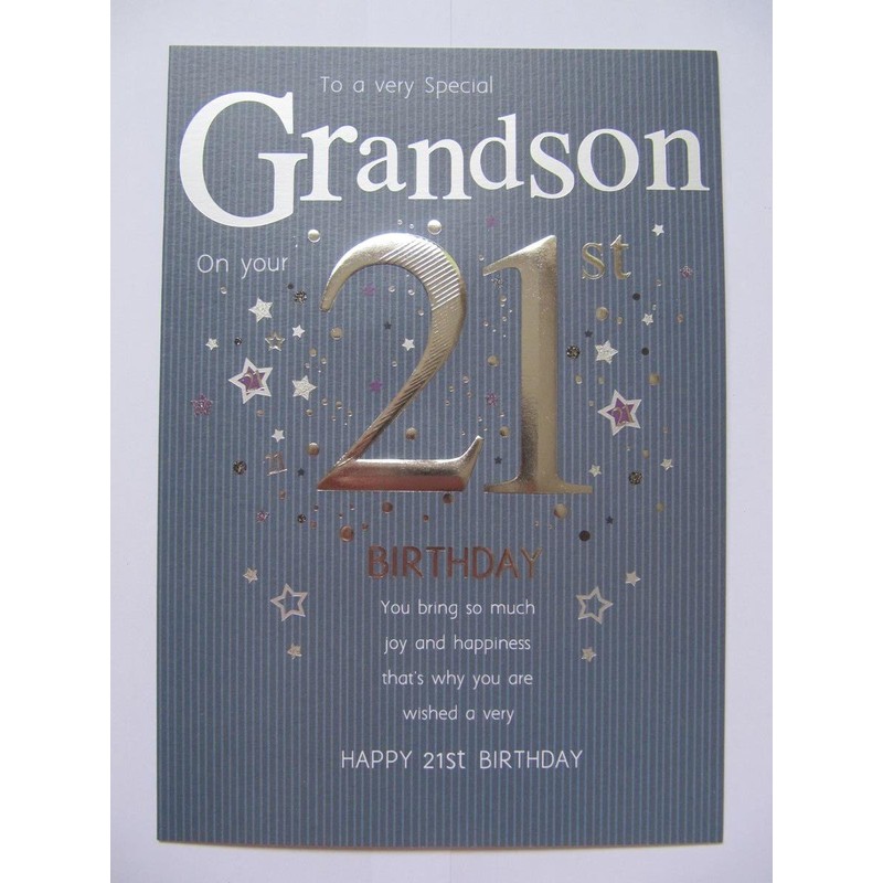 Piccadilly Greetings Group Ltd STUNNING TOP RANGE A VERY SPECIAL GRANDSON ON YOUR 21ST BIRTHDAY GREETING CARD, blue, 10 x 7