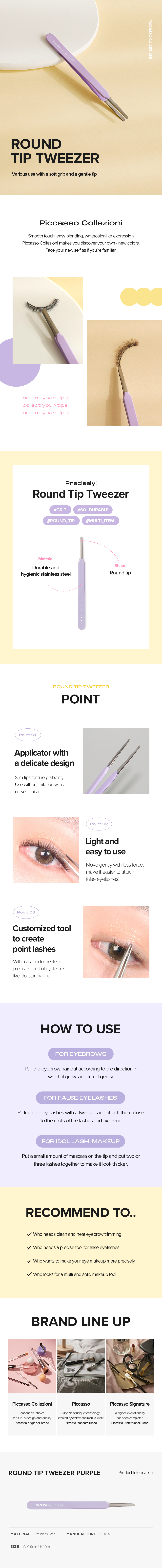 - Product/Model Name: Piccasso Collezioni Round Tip Tweezer #Purple