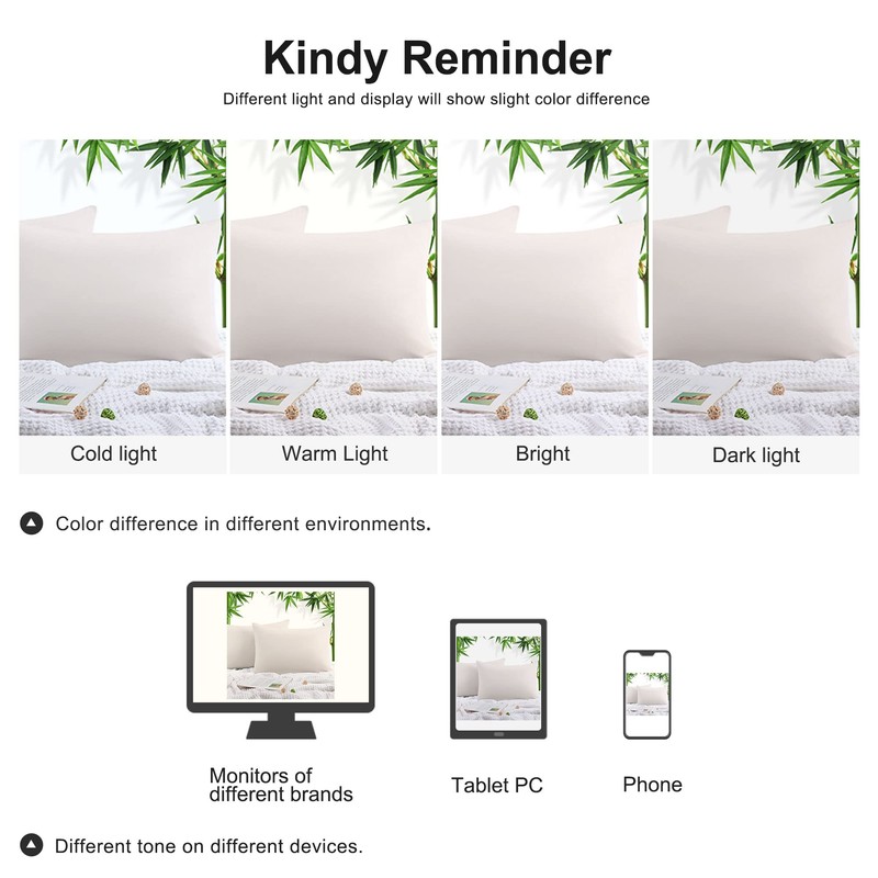 - Top material – Our cushion covers are made of 45% bamboo fibre and 55% polyester, breathable and soft. Bamboo fibre is also skin-friendly and hygroscopic, thanks to its temperature adaptability, it will bring you cool and comfort all night.