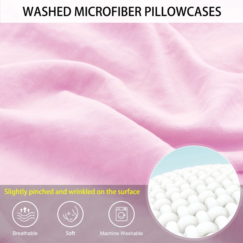 - Softness and Comfort: Our brushed body pillowcases are woven from pre-washed microfiber polyester material, durable and breathable. We combine the advantages of Microfiber and Washed Cotton. The Microfiber after the washing process is lighter, softer and more comfortable than Washed Cotton. Wrinkled is the fabric's texture after the unique washed process, which makes the covers look more softer to the skin. They won't be weakened or torn even after years of use.