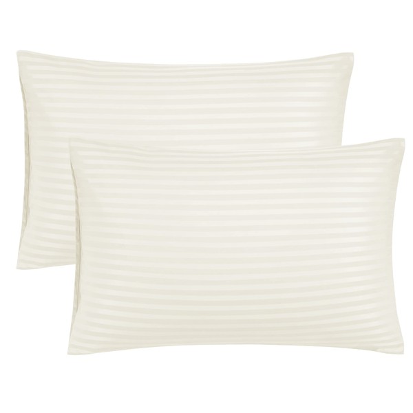 PiccoCasa Pillowcases 2 Pack Striped Soft & Breathable Microfiber Pillowcase Khaki with Envelope Closure 50 x 65cm Pillow Covers for Home and Hotel