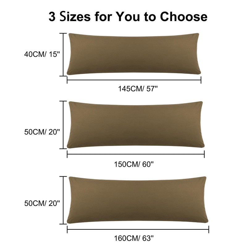 - Package includes: 1 x body pillow cover (no pillow). We have a variety of colors and sizes for you to choose from. The luxurious long pillowcase with solid colour matches any flat sheet and duvet cover. Everyone can find the right one for your furniture and room decoration style, and there is always one that suits you.