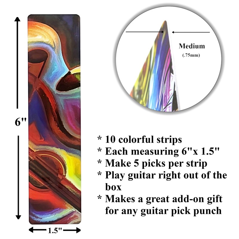 • The most popular pick strips on Amazon for all guitar pick makers! These plastic strips are the ideal complement to the Pick-a-Palooza or any guitar pick punch. Music Art pack of 10, 6" x 1.5" strips.
