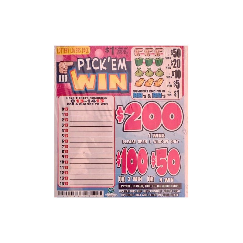 Pick em Win $200 Bingo Pull Tab Game, Seal Card