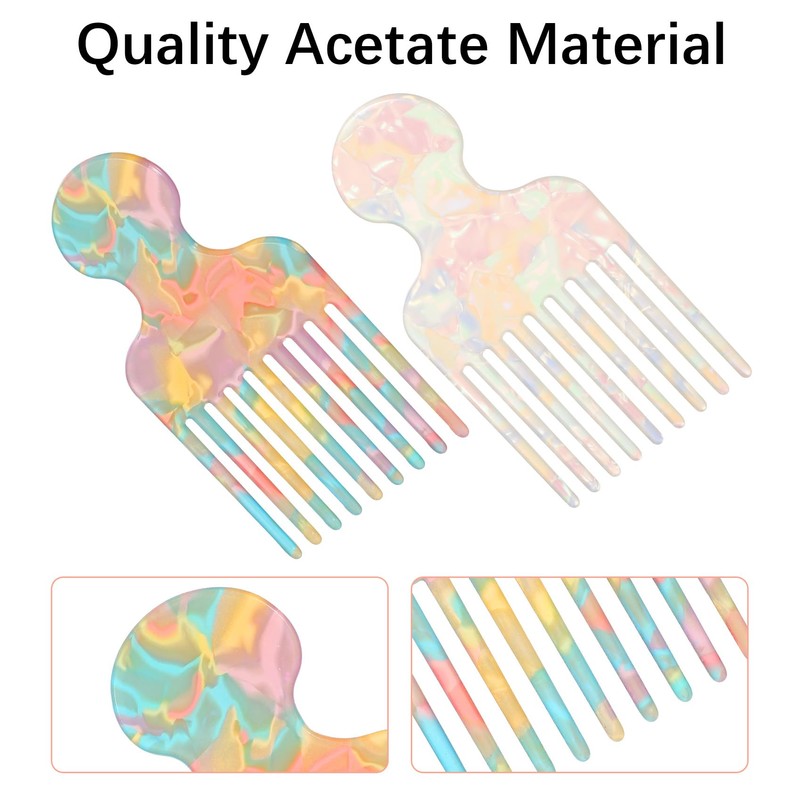 - Wide Tooth for Detangling: Our Hair Pick Combs feature wide teeth designed to easily detangle knots and tangles in your hair. These combs are perfect for managing curly, wavy, and straight hair, ensuring a smooth and hassle-free grooming experience. The wide teeth gently lift and separate hair strands, reducing breakage and damage;